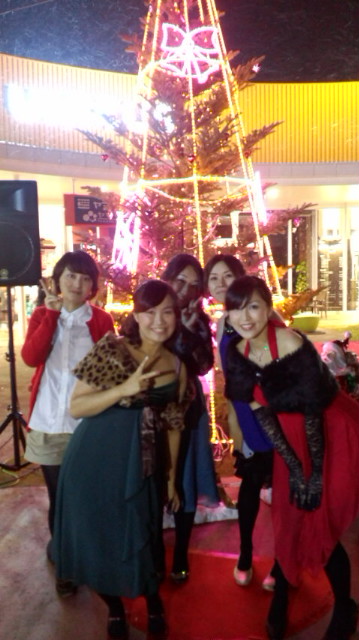 201111/03 イルミネーション点灯式ライブ ブログ 0 直前に告知はしてましたが、今日はUNICUS吉川のイルミネーション点灯式ライブにお呼ばれして来ました♪ショッピングセンターのイベントライブなんて何年か振りで、久しぶりの感覚に緊張しました。でも、支配人始め、とても気持ちのいいみなさんにほっこりパワーを頂き、無事にイベント終えることが出来ました☆お陰で気分はすっかりクリスマス♪おそらく人生初の真っ赤なドレスにも挑戦しましたwさーて、次は!またライブだ♪ツリーの前で記念写真。***NOZOMI***