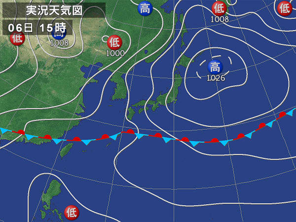 201105/06 低気圧症〜 ブログ 0 ひざびさ来ました、低気圧頭痛予報☆今日は夕方、あまりの頭痛の酷さに我慢出来ず頭痛薬を飲んでぐったりお昼寝しちゃいました。起きて、今日の天気図確認したらこんな状態。前線が西からこっちへ向かってくる時が一番頭痛が酷いです。すなわち東京に雨が降る前日から数時間前くらい。明日は雨かな?関西の方、今どうですかー?***NOZOMI***