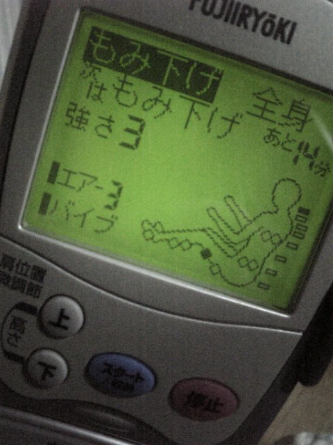 200904/12 リラクゼーション ブログ 5 実家に帰省中~実は我が家にはマッサージチェアがあります。あの、温泉とかいくと置いてあるアレね(笑)ここ最近、身体がだるくて足とかかなりむくんでたんで、早速全身コースを堪能中~♪特に足のエアーコースが気持ちいーわー★